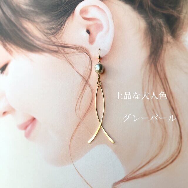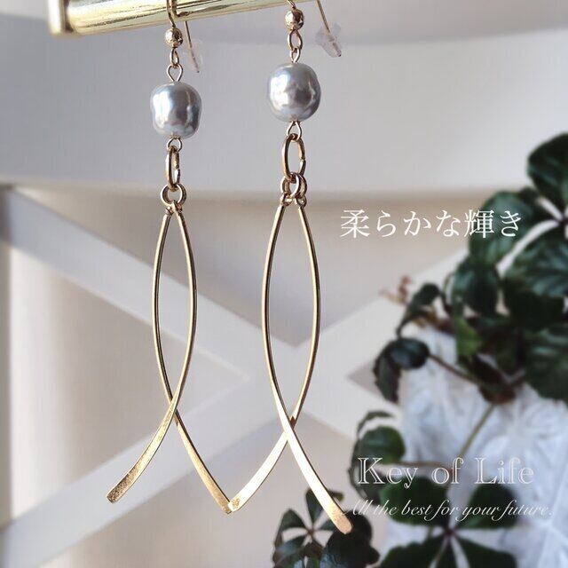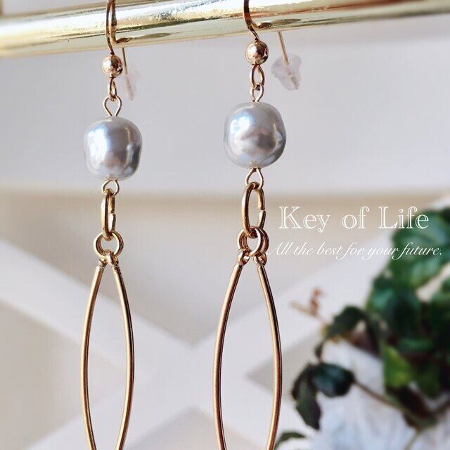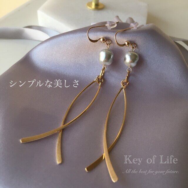 Key of Life《バロックパール×スティック》グレーパール サージカルステンレス ピアス/イヤリング