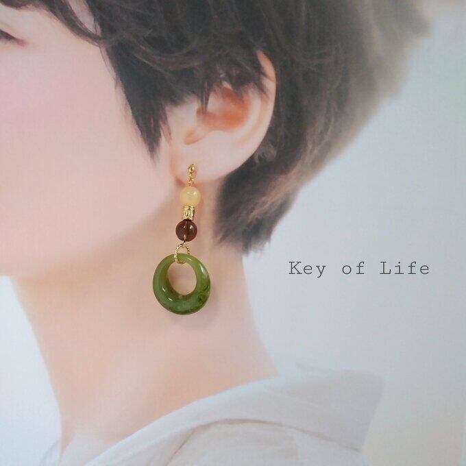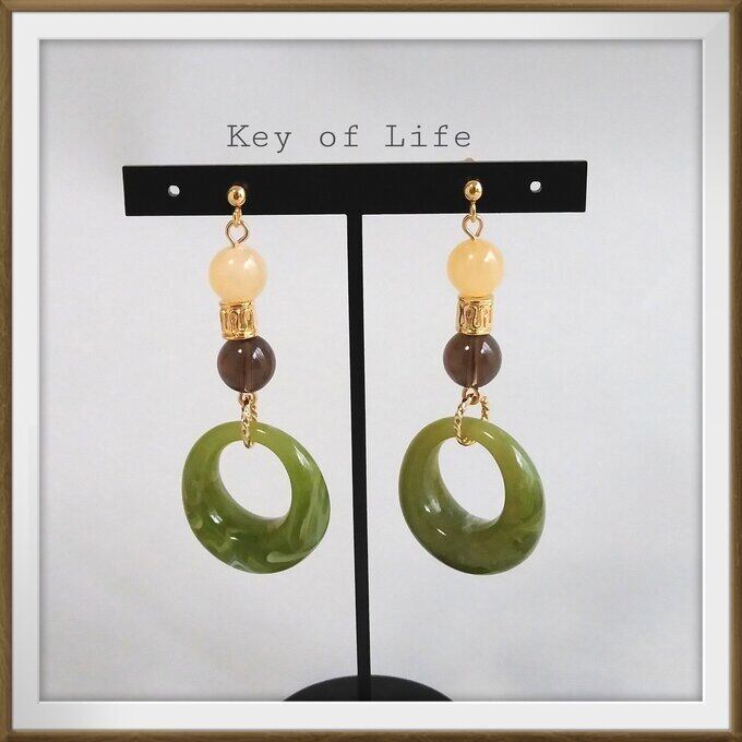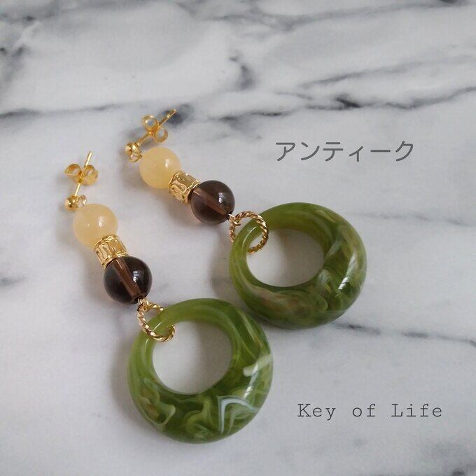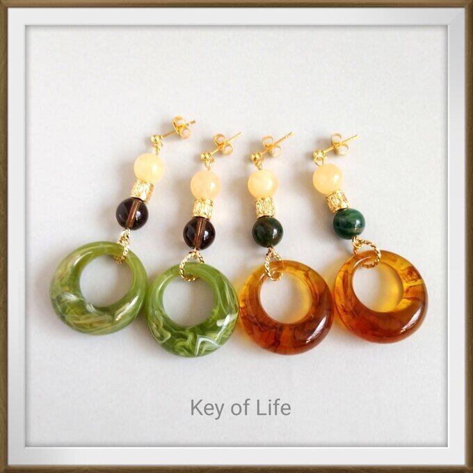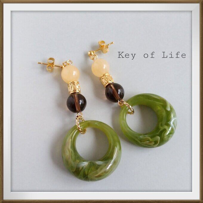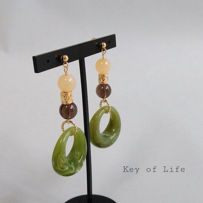 Key of Life《天然石スモーキークォーツ×ハニーストーン》サージカルステンレス ピアス/イヤリング