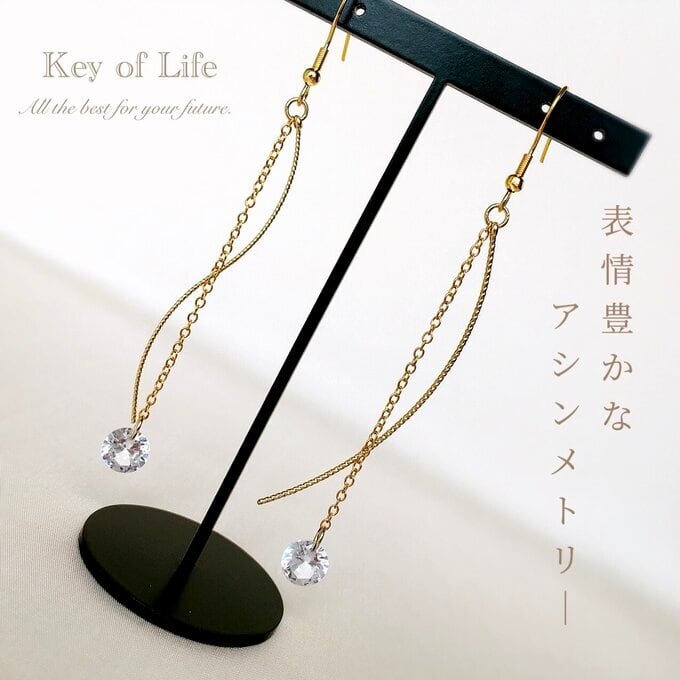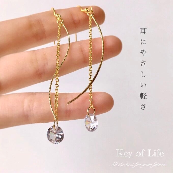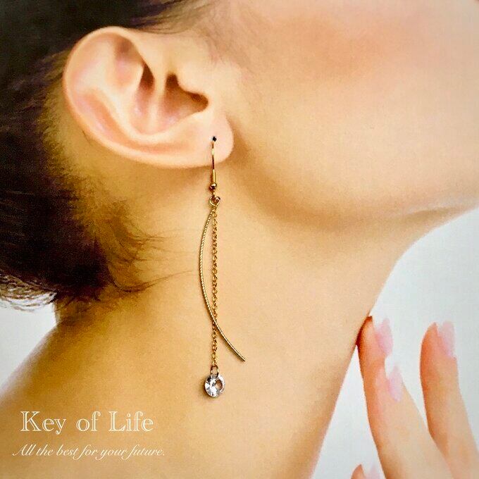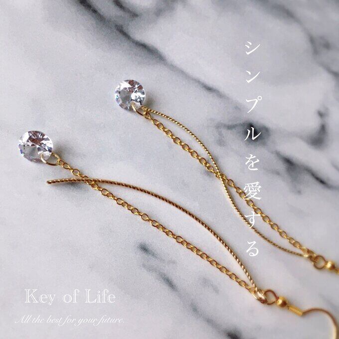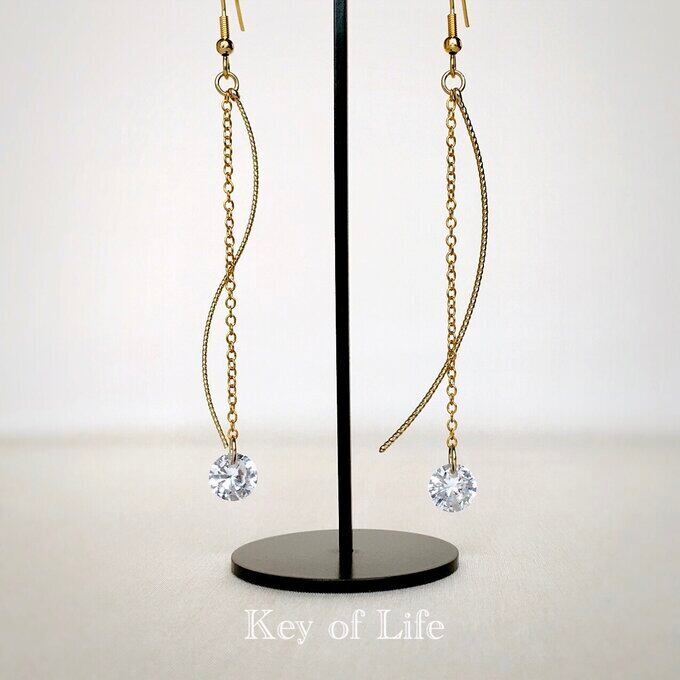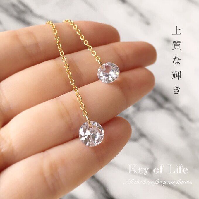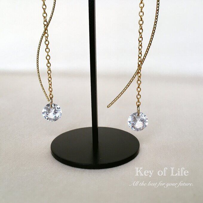 Key of Life《天然ダイヤに限りなく近い一粒》ロングタイプ サージカルステンレス ピアス/イヤリング